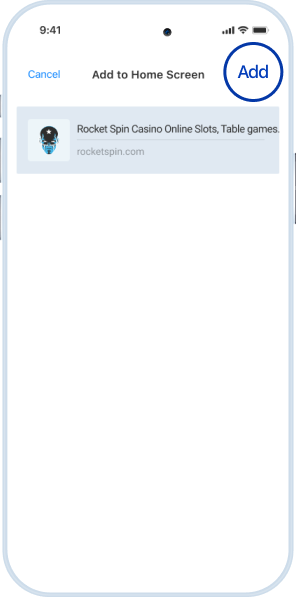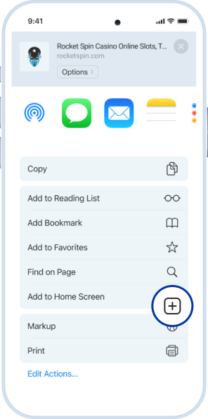 Ouvrez rocketspin.com avec Safari et appuyez sur « Partager » dans le panneau de navigation inférieur.